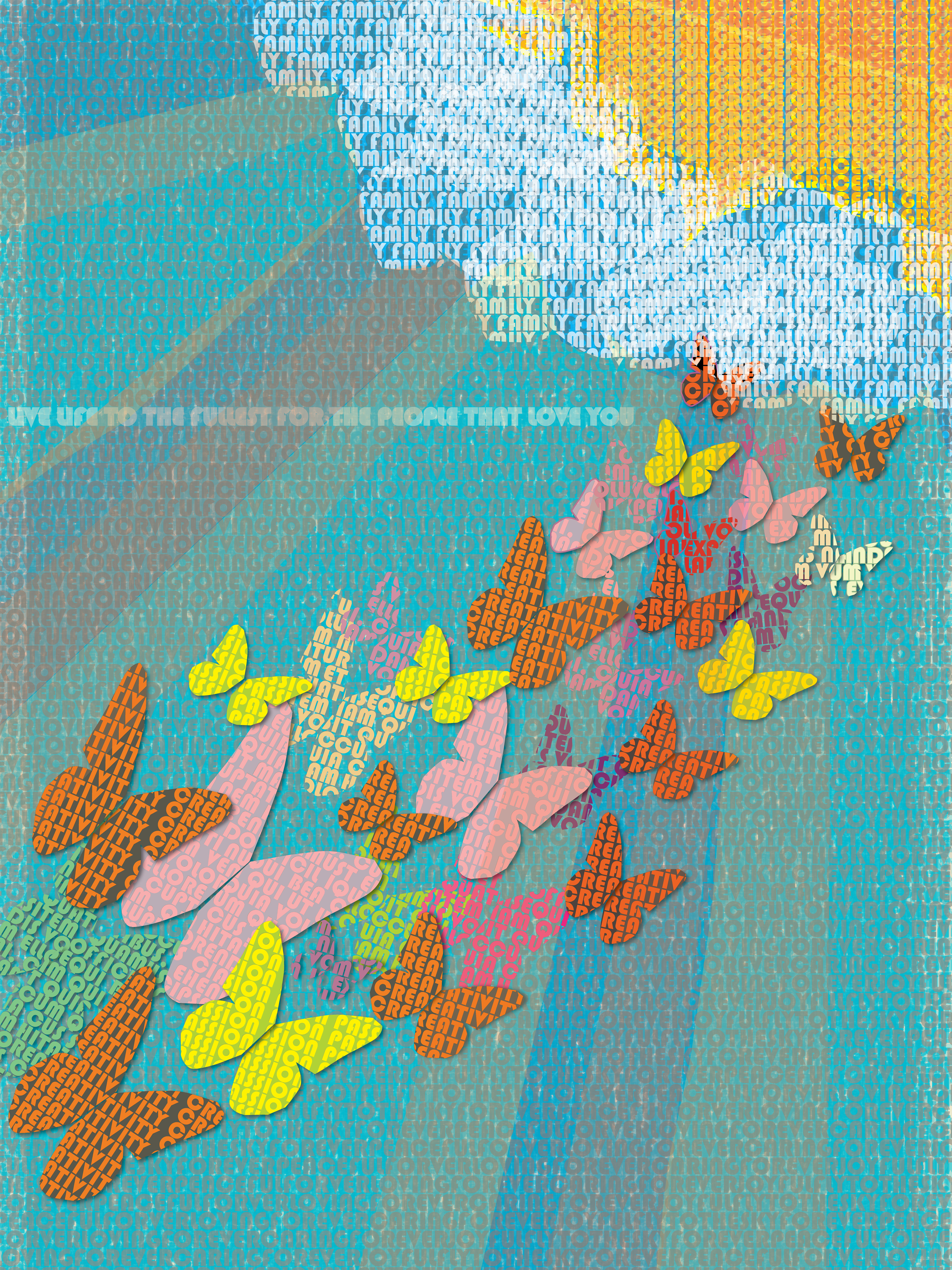 Represents the memory of my late Aunt. Everything on the page is made out of only words. This was made from Adobe InDesign.